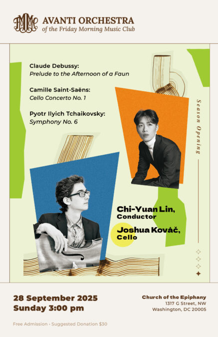 Please join us for Avanti’s first concert of the new season! Chi-Yuan Lin, Music Director and Conductor. Free admission! Suggested donation $30.